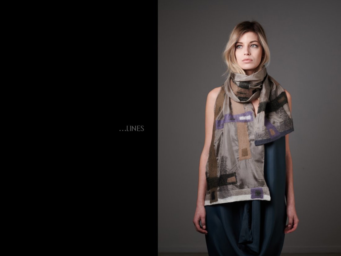 The LINES scarves collection is a luxury series dedicated to elegance and style. The shiny silk pongé decorated with top quality merino wool and wool/silk blends gives life to an accessory of everlasting style. Each scarf matches geometrical austerity in design with richness in colour and texture. An one-of-a-kind fashion accessory to embellish every outfit in the most impressive way.