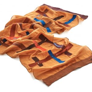 Handmade silk pongé scarf of merino wool and silk fibres with Nuno Felting technique. In copper.