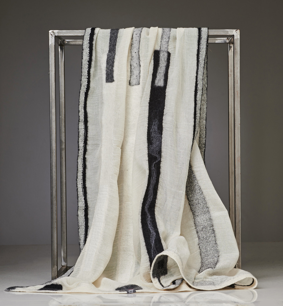 Handmade shawl of fine Merino wool on light organic cotton gauze.